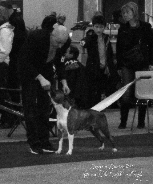 "DCCBonne tête,Bonne pigmentation,Bon avant,Bon corps,Bonne poitrine,Bonne queue.Chienne qui devrais être présenté plus décontractée"(Ce commentaire s'adressait à moi-même).