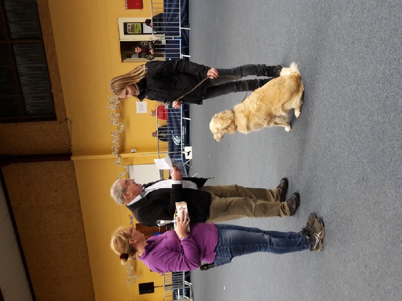 Chienne de bonne taille avec une jolie tête et expression. La poitrine est déjà bien formée mais reste évidemment à finir Bonne angulation, avant et arrière. Bon rein. Bon dessus. Bonne attache de queue. Bonnes allures régulières.
