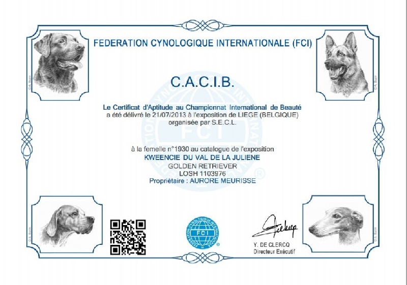 Chien Golden Retriever CH. Kweencie du Val de la Juliene