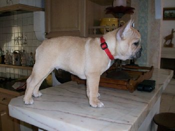 Fauve, complet, queue très courte, ensemble harmonieux, bonnes oreilles, bonne forme de tête, bonne poitrine en rapport avec son âge, a du menton, bon prognatisme, se déplace bien.