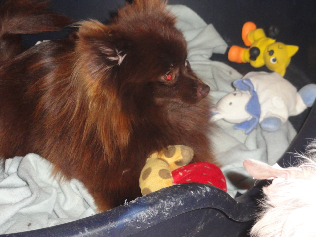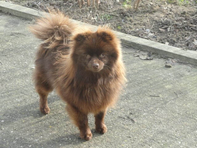 Marron, très bonne occlusion, bon stop. très bonne angulation, très bonne encolure. bonne poussée. fourrure en mue.