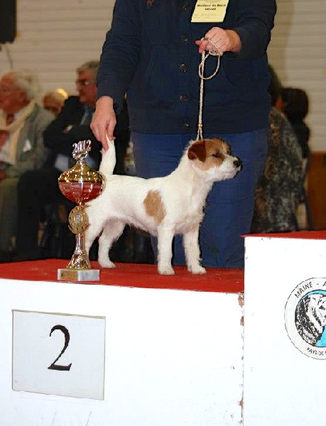 Jolie jeune avec jolie tête.Excellent oeil, oreille bien attachée.Coude bien placés, très bon aplomb.Bien construite avec bonne ossature, excellent texture de poil.Queue bien attachée et portéese déplace et s'exprime bien en mouvement