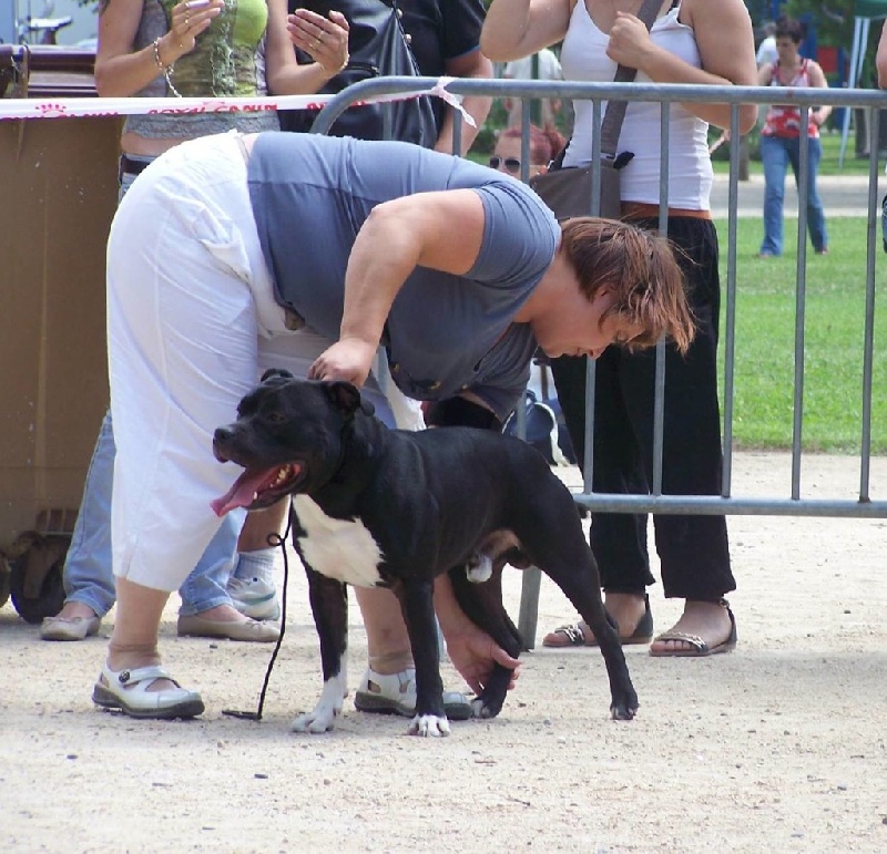 Typique, très sociable, ossature et substance correctes/Bonne angulation arrière/Avant main avec humérus trop droit/Pied trop ouvert et plat/ Tête typée, yeux foncés, museau un peu court, incisives en contact.Allure correcte