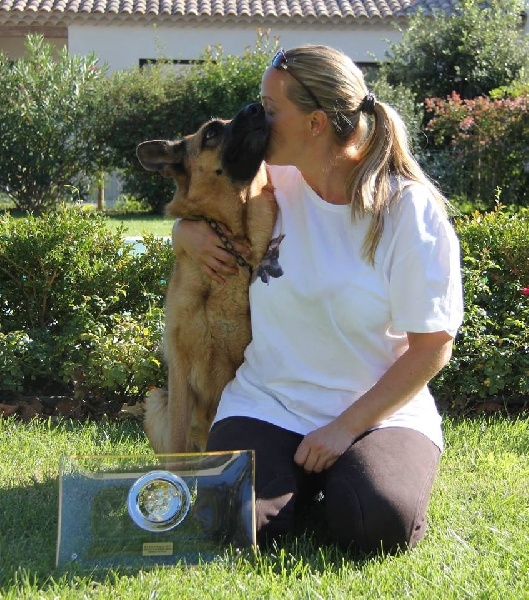 Très bonnes expressions, typée, bonne tête, bonne ligne du dessus et dessous, très bonnes angulations, pieds souples, très bon mouvement CACS, CACIB et BOB (Best of Breed)Commentaire de M. Le juge Hans Joachim Dux lors de l'exposition Avignon 2013