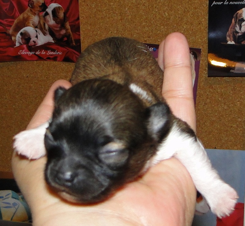 Classe puppy ; B contruit, crâne large, bombé correct, B largeur de chanfrein, exc denture + poitrineAV correct exc encolure + epaules + AR muscu ne se livre pas complètement