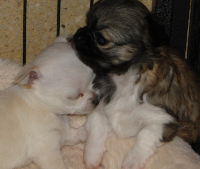CLASSE PUPPY : fontanelle fermée exc articulé bonne implantation de la queue, bonne poitrine demarche correcteGart ne lève pas la queue ce qui a décidé MR le juge a donner le Meilleur puppy à la femelle.Grrrrr...