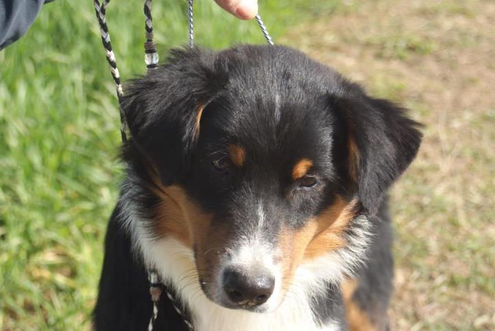 16mois, denture ciseau, bonne forme de crâne, stop marqué, oeil foncé, bonne encolure, épaule bien définie, la ligne dorsale doit être plus forte, la poitrine manque de maturité, croupe un peu arrondie, arrière main bien musclée, pas la meilleur condition du poil, démarche assez serrée en arrière main