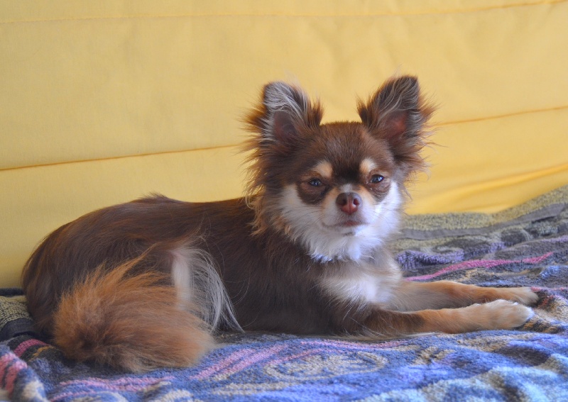 Arrivée en juin 2013, Galice a vite trouvé sa place à la maison. C'est une chichi de caractère avec beaucoup de présence et de charme, vive, joueuse et tendre à la fois. Un amour de Miss Choco.