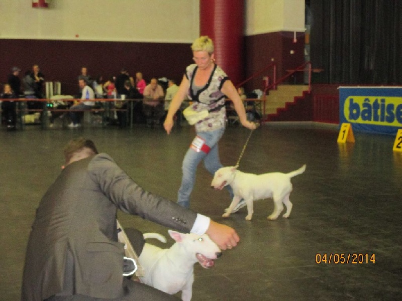 classe puppy37.5cm avec d'excellente proportion-jolie tete de fille-chienne blanche avec truffe bien pigmentée-dentition correcte en ciseaux- excellente epaule-la pointe du sternum est bien developpée-magnifique mouvement arriere-sujet de qualité et d'avenir