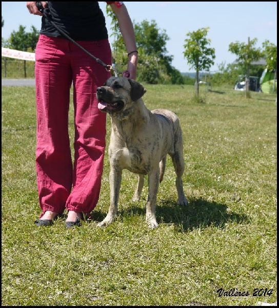 DCC- Très joli sujet- EXC proportion générale, typique- Forte ossature- EXC anuglation avant et arrière- TB épaule- EXC dessus et poitrine- Très jolie tête avec yeux typique bien pigmentés- Belle expression- EXC crâne et museau- EXC poussée