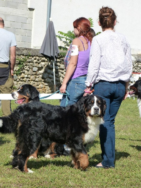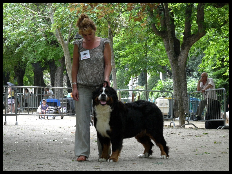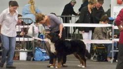 "Chienne de b. taille avec une b.ossature, exc. construction général, la tête déjà large, quelques mouchetures sur le nez, l'oeil est de bonne couleur, oreille b. porté, exc. angulation arrière, exc.longueur de fouet, Dentition Complète en Ciseaux, serre les postérieurs, exc. mouvement avec bonne prise de terrain."