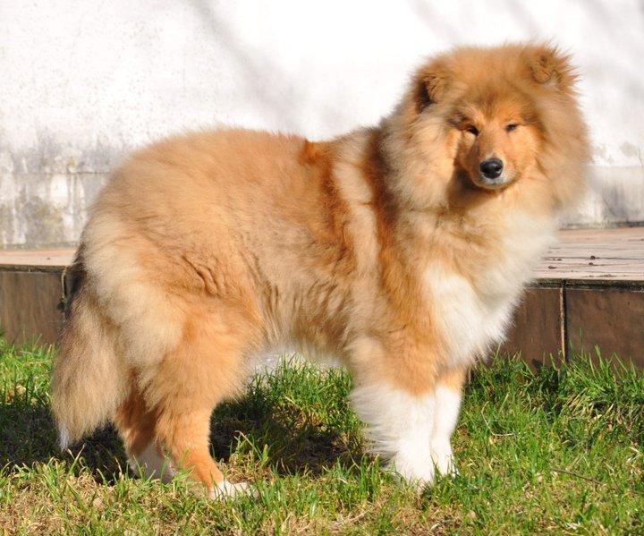 Joli sujet, très belle tête, très jolie expression, je l'aimerais plus médioligne, bonne poitrine et porportions et très légère sous angulation, port de fouet trop gai et enroulé.