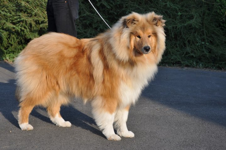 Exc type, exc format, DCC, stop bien placé, un peu trop prononcé, TB sortie d'encolure, exc expression avec de jolis yeux en amande, TB port d'oreilles, préfèrerais un peu plus de longueur de corps, exc ossature, fouet un peu court, exc aplombs avants et arrières, TB angulation avant, exc angulation arrière, exc couleur et texture de poil, exc fourrure, serre un peu à l'arrière, exc allures, fouet un peu gai.