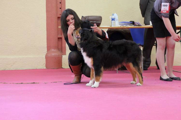 Très joli ensemble , robuste, solide, DCC , jolie tête , belle expression, excellente ossature , TB applombs et angulations, exc fourrure malgrè la mue et exc caractère exc mouvement d'ensemble