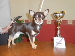3 ans 2.7 kilos Tête expressive féminine un peu de chanfrein FF B oreilles corps un peu long B substance ang av/ar correct Ecx mouv queue b portée Exc présentation