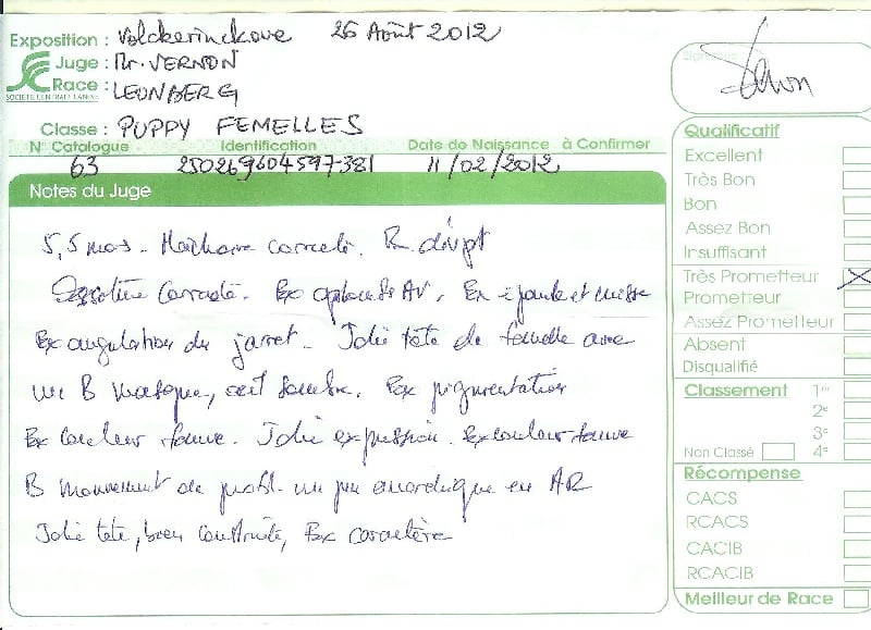 Informations sur le chien