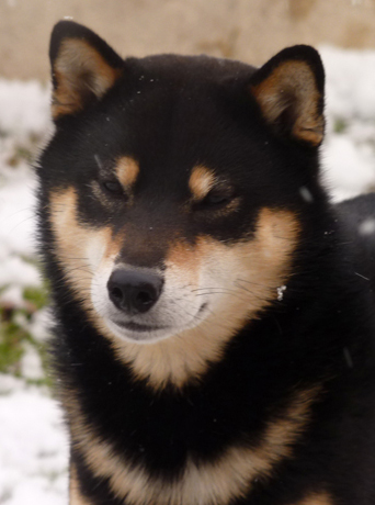 Difficile à juger - Dentition correcte - Grand sujet - De bonnes proportions - Jolie tête et expression masculine - Oreilles bien placées et portées - Excellent œil et pigmentation - Urajiro bien marqué - Le corps à de bonnes proportions - Excellent fouet, aplombs, angulations - En place - Mouvements correctes
