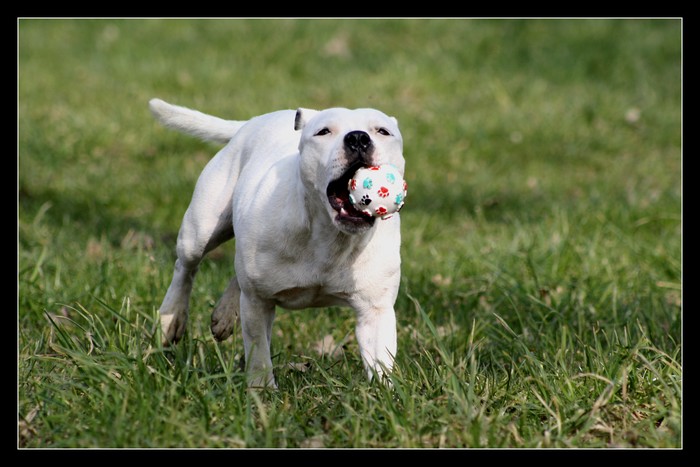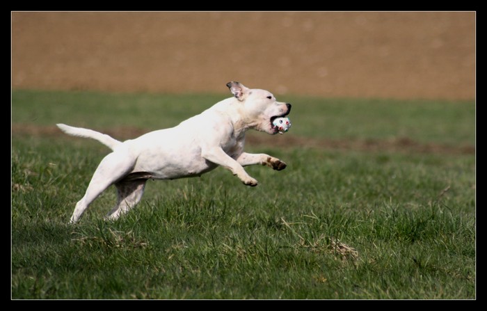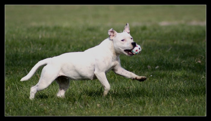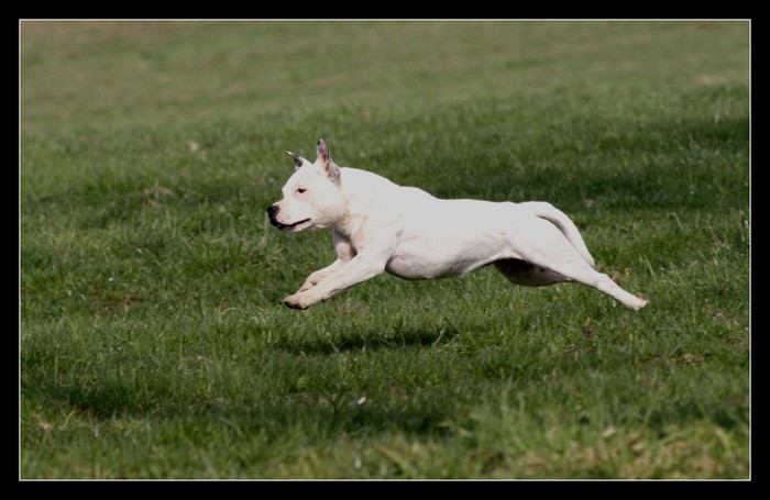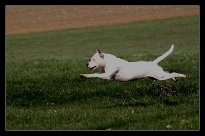 Très bonne construction.Tête bien typée, stop bien marqué,DCC, l’œil fonçé.Dos bien ferme.Poitrine assez développée.Très bonne avant et arrière main, côtes, épaules.Bonne angulation arrière.Très bon mouvement.