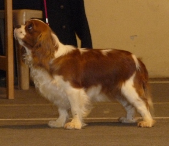 18 mois, tête correcte, bonne attache d'oreilles, expression douce, Bonne forme de côte légèrement enrobée, bonne arrière main, jarrets un peu ouvert, excellente angulation arrière, bon pieds, bonne ligne de dessus, se présente bien