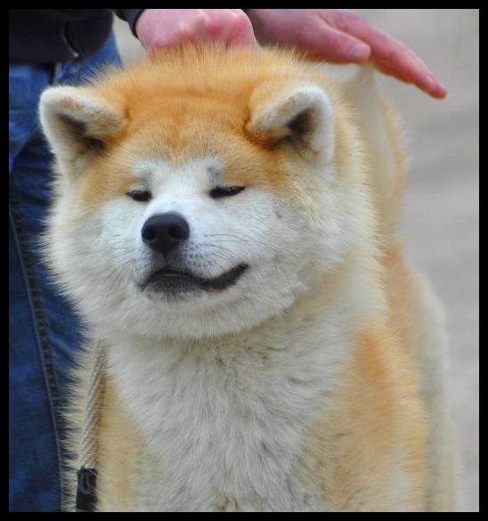 1er Excellent, meilleure jeune mâle et meilleure jeune de race.DCC, Jeune sujet de grande taille, Bien dans le type, 67 cm a garrot. En sortie de Mue mais très bonne qualité de poils. Oreilles bien placé, excellent oeil bien foncé et en amance. Excellent pigmentation, fouet bien insérré et bien porté. Urajiro bien marqué, belle encolure, excellente ligne de dos. Le poitrail doit s'éclater. Excellente construction, excellent aplomb, bon parallélisme, excellente allures.