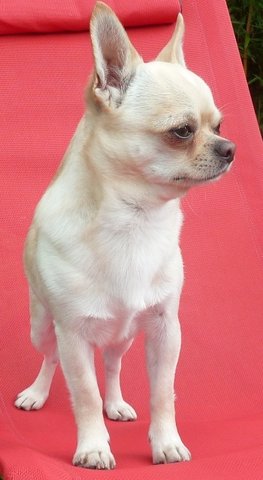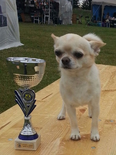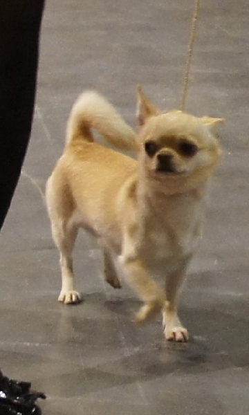 Excellent type, jolie tête, frontanelle fermée bonne sortie, dentition correcte, un peu enveloppé, excellente ossature, belle poitrine et dos, fouet bien inséré, excellents aplombs avant, Trés bonnes angulations arrières, excellente allure.