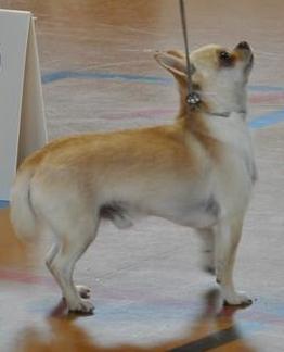 Jolie tête, yeux de belle forme, dentition correcte, bonnes épaules, excellente poitrine, excellente ligne de dos, excellentes angulations avant et arrière, bon piedsExcellente démarche, bonne présentation.
