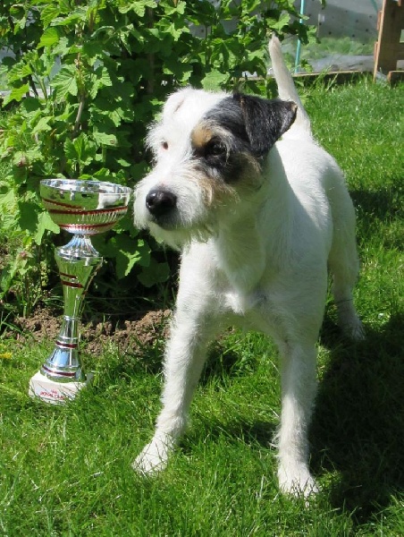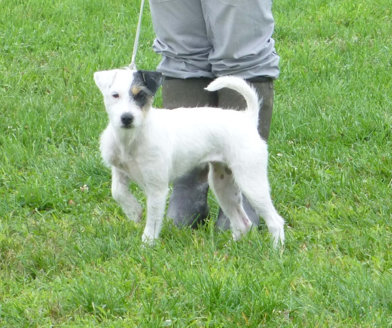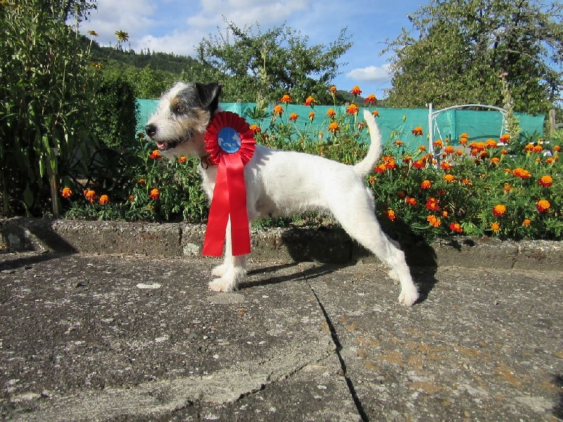 DCC, Très belle chienne tricolore, poil dur, jolie tête, exc oeil noir, exc pigmentation, belle encolure, exc épaules aplombs et pieds. Exc ligne de dos, cuisses très musclées, exc arrière main, exc poil dur qui manque un peu de toilettage.Chienne dynamique avec suffisament d'os.