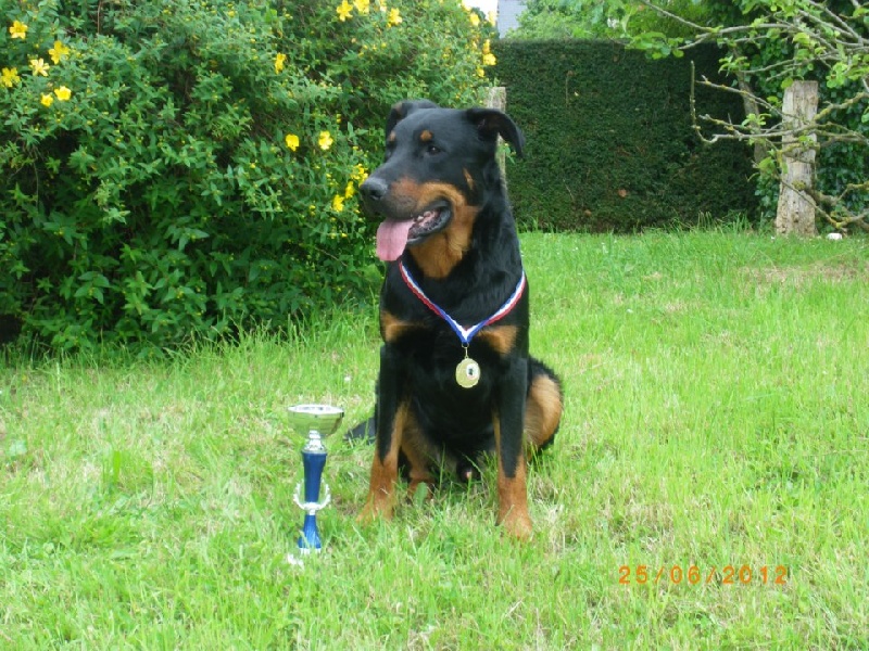 Chien massif mais sportif, qui pratique l'agility régulièrement en entraînement et en concours (en grade 2), très bon gardien, mais pas agressif. A travaillé un peu sur mouton.