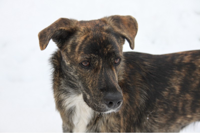 DCC, tête B expressive,B stop, B crane,oreilles B insérées, pendantes,B pigm. narines B larges, TB av Main, B ossature,poitrine B descendue,TB sortie encolure,dos B rectiligne, B attache queue,A-M B musclée, B angul chienne B construite, TB robe, B bringeures, fouet B fourni en poils TB poussée, B // av. ar., mouv. régulier