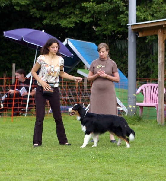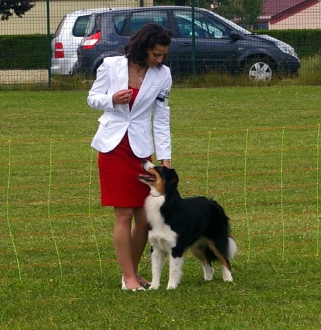 DCC exc proportions en tête, exc oeil forme et couleur, oreilles bien implantées, très bonnes proportions, exc dos, bonne croupe, exc poitrine de jeune, bonne ossature, très bons applombs et angulations, bon mouvement et allures