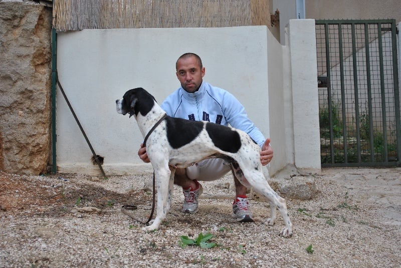 BLECK est un pointer bécassier qui exerce ses talents dans le haut var. Chien précoce il a déjà reproduit et ses chiots ont été aussi précoces et très chasseurs. Il est bien construit avec une très belle encolure , ce qui lui donne des allures plutot pas mal.C'est un chien qui "prend du terrain" et qui trouve des bécasses avec brio. Il est le frère de BRUCE DES GORGES DU REGALON (à mr ginestet élevage du rocaillou) qui est trialer de grande quete et fils de TAMBO DES FEUX DE LA PASSION cot 6 élite A trialer de grande quete (à mr vincent garcia élevage des gorges du régalon) . Au niveau de la dysplasie , BLECK est A.