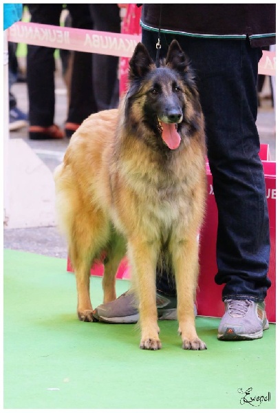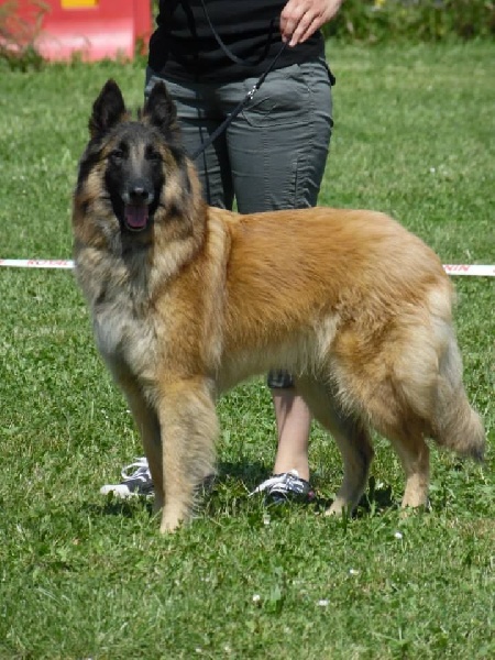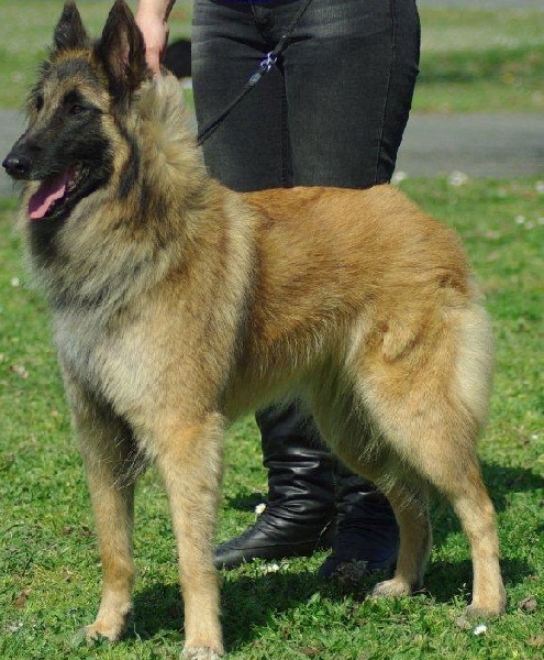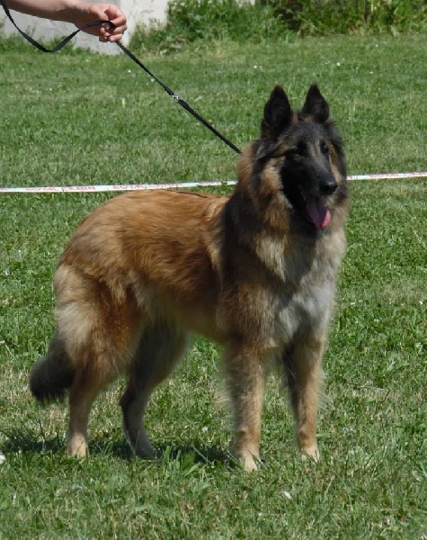 DCC bonne fourrure excellente texture fauve moyennement charbonné.taille moyenne stop modéré chanfrein rectiligne excellente oreille moyenne pointue, excellent oeil sombre bien placé.garrot sorticroupe fuyante excellente poitrine dans ses trois dimensions, poitrail correct. épaule droite,exc angulationarrièreExcellente présentation fière, beaucoup de chic; belles allures bergère