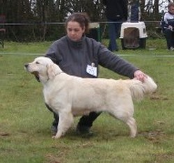 Bien dans le type et harmonieuse.Très bien présentée.Jolie tête, bonne pigmentation, excellente encolure, angulations avant et arrière.Cage thoracique bien descendue.Excellente ligne de dos et attache de fouet.Excellente robe.Se meut très bien.