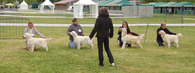 Très bien pour une première fois. Chien bien construit. Bonne ossature, mouvement correcte pour son âge."Pas de classement pour les puppy."