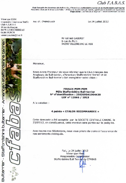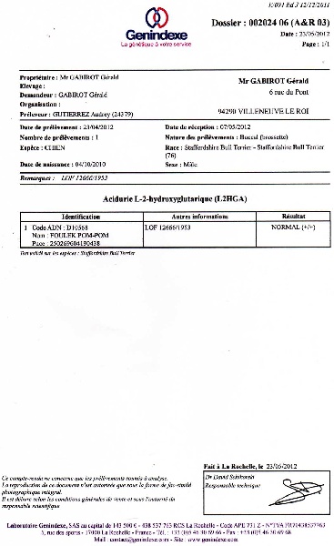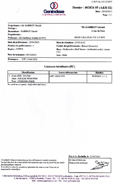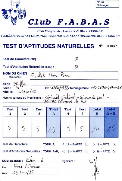 Chien Staffordshire Bull Terrier Foulek pom-pom (Sans Affixe)