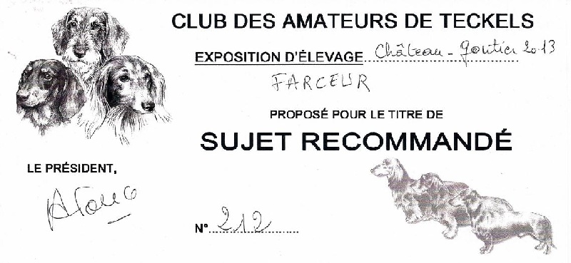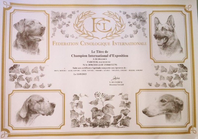 Ce CACIB permet à Farceur de prétendre au titre de Champion International d'Exposition