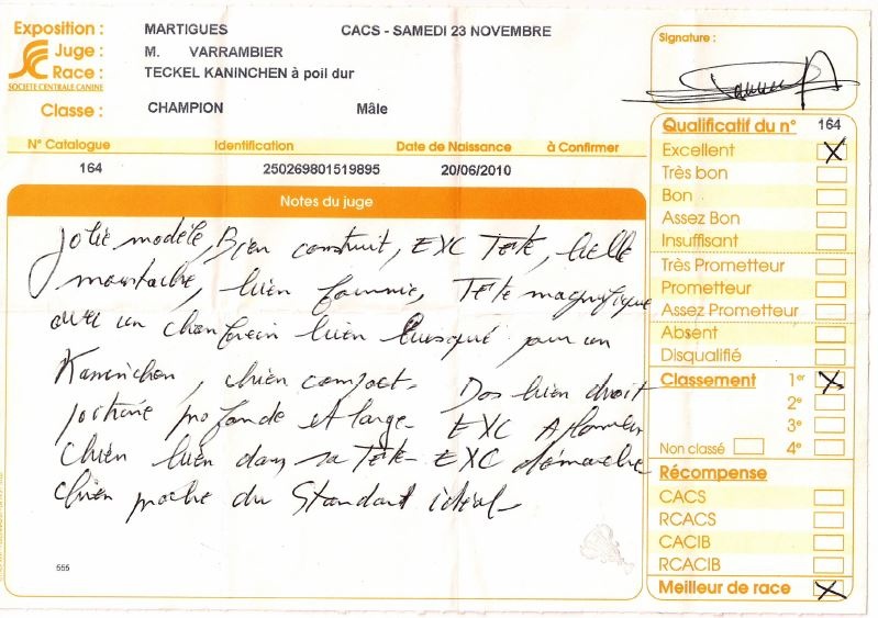 * Castres 18 Novembre - Spéciale Teckels : Excellent / Classé 2ème / RCACS / RCACIB