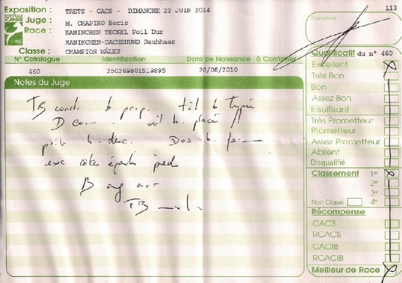 * Auch 1° Juillet - Spéciale Teckels : Excellent / classé 1° / CACS / CACIB / BOB