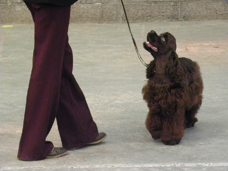 chocolat chien déjà bien fait pour son âge jolie tête les yeux sont encore clairs bonne épaule exc ossature applombs et pieds corps assez court bonne poitrine belle arrière main bonne qualité de fourrure marche bien