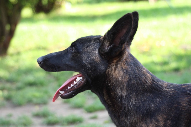 3 ans. DCC. Bien construit. Oreilles un peu grandes, yeux foncés bien oblique, corps musclé, poil d'une excellente texture avec un beau bringé. Allure excellente.