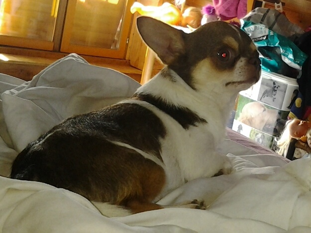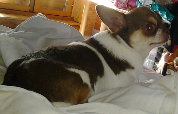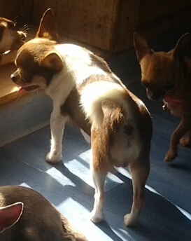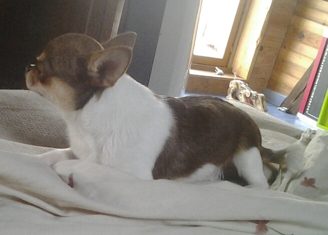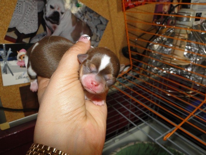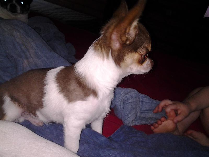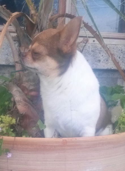 issu d'un papa bringée et d'une maman blanche porteuse de bleu et chocolat.