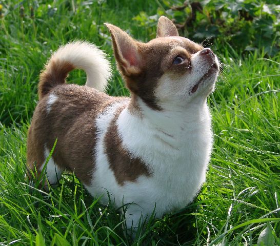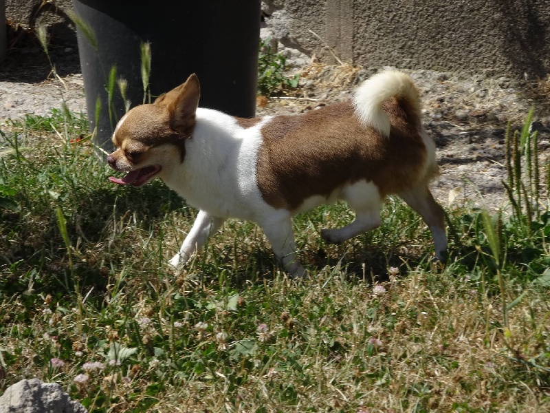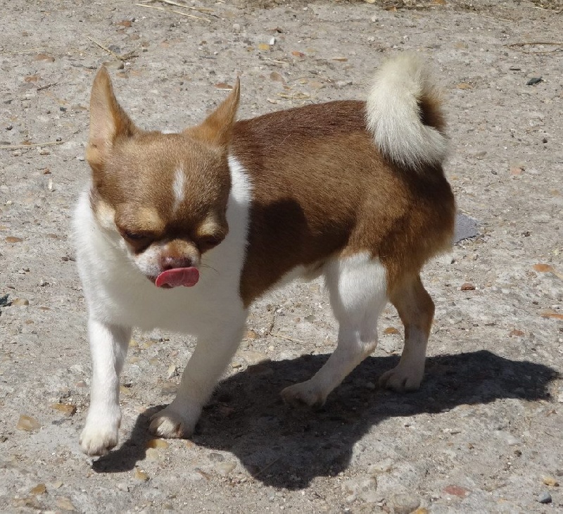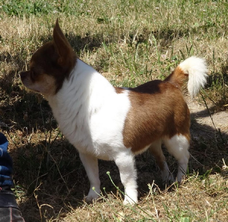 Tete pomme stop, oeil grand de belle couleur. Exc structure. Dent correct. Demarche correcte mais ne porte pas la queue.