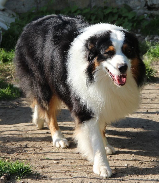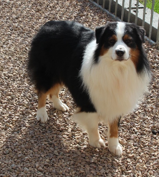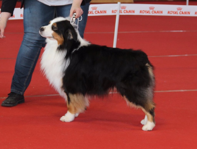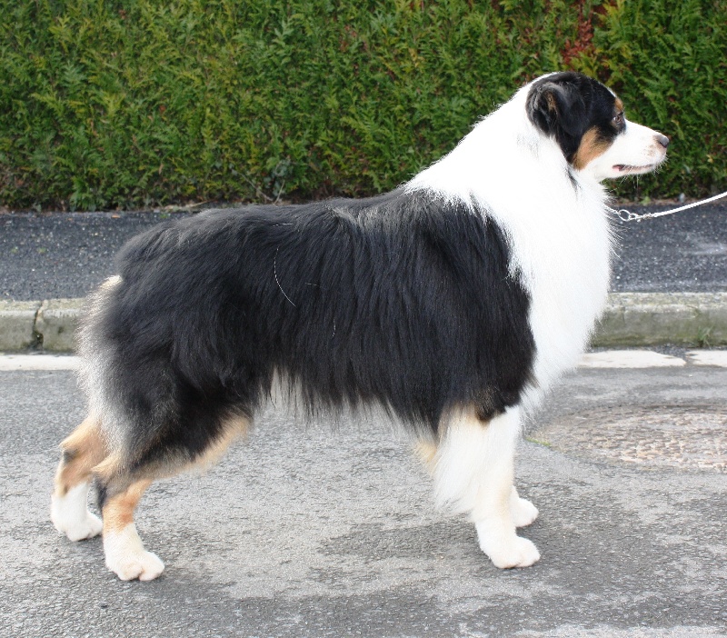 Classe Inter très typique, exc tête et expression, exc enclure et ligne de dos, exc poitrine bien descendue, exc démarche, couvre bcp de terrain, jolie fourrure et bien fournie.