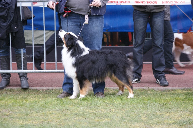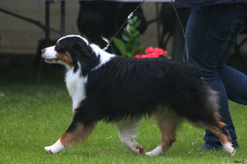 Pour sa première en ouverte2ans;dcc, exc couleur,exc qualité de poilb pigmentation, poitrine bien dvpéeb ang, b encolure, b ligne de dosbien présenté, mvt fluide