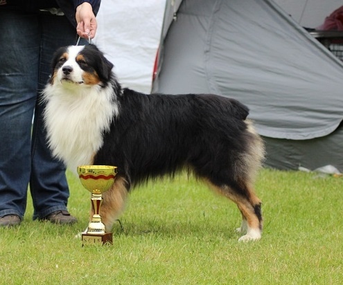 Classe ouverteJoli ensemble, d'un gabarit moyen,DCC,jolie tête, b expression, B ossature en rapport avec le sujet,exc applombs et angulations, exc poil, exc mouvement.
