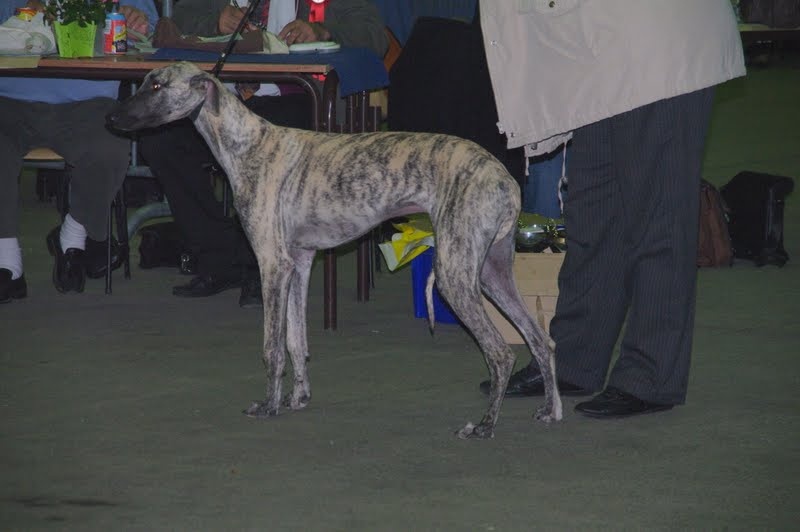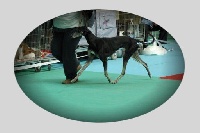 joli sujet un peu réservé avec un exc type. mais format un peu grand.les oreilles pourraient êtres + plaquées. exc encolure. tb ligne de dessus.exc croupe,cuisses et jarrets.Belle poitrine. tb angulation avant.exc demarche.le dos se creuse un peu en mouvement.