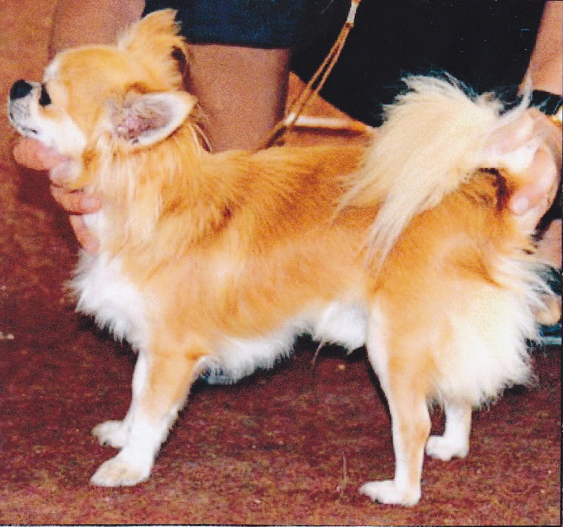 Poids 2kgs3, FF, excellent type, excellent format, excellente construction, très jolie tête, bon rapport crâne-chanfrein, excellent oeil, bonnes oreilles, corps tubulaire, bonne ossature, bon port de fouet, joli mouvement, joli fouet.