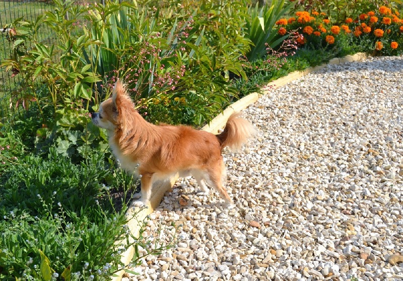 Il est de construction solide (2kg500 ), une excellente tête très typée avec un nez court, un stop bien marqué, un regard très expressif.
