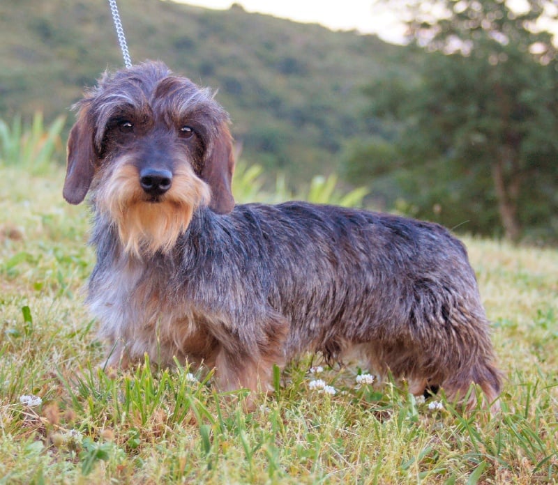 Teckel Nain de couleur Sanglier poids adulte 3600 grammes.
