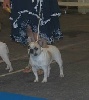 Sujet très féminin, ligne de dos pourrait être plus marquée, queue courte, poitrine bonne largeur, TB ossature, pieds légèrement écrasés AV, TB angulations et aplombs AR, tête bien typée, l'oeil est un peu trop globuleux, le fond de l'oeil est rouge, oreilles bien placées, portées, bon profil, décolle légèrement les coudes, mouvement correct.